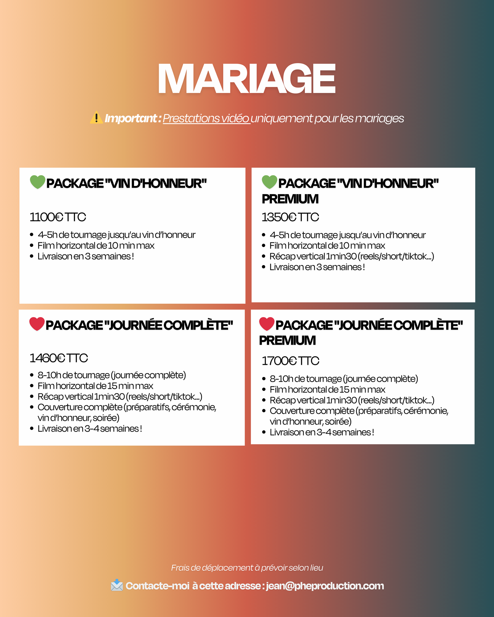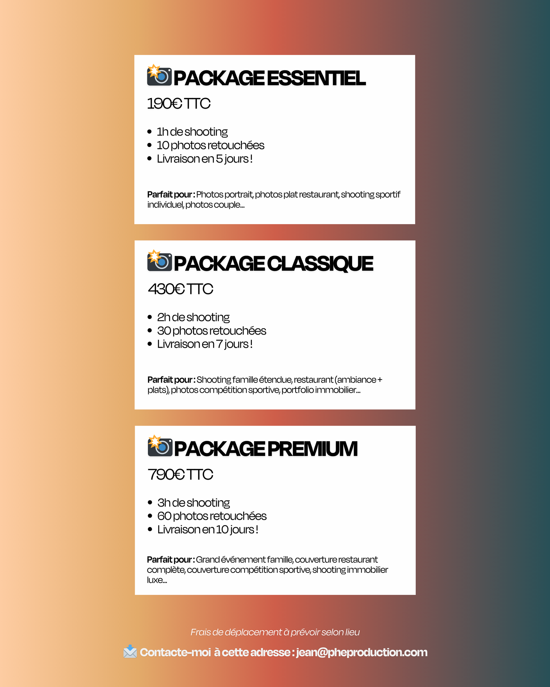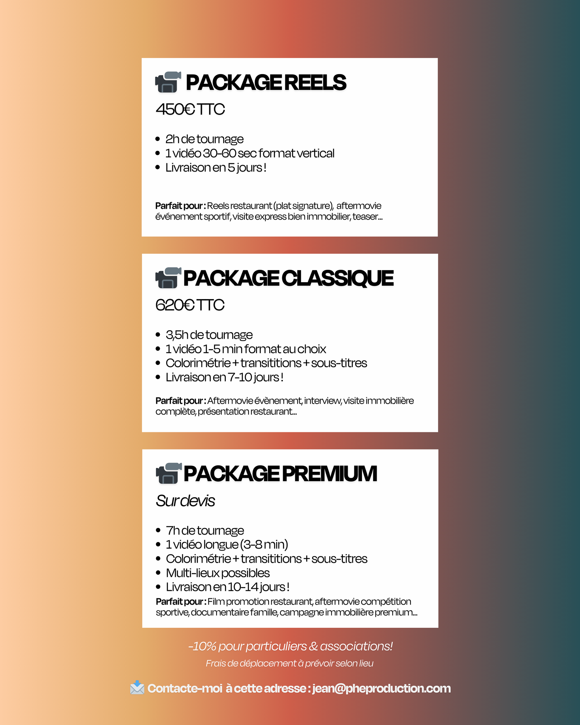 - Classique → Projets sérieux, aftermovies, événements, couverture complète
